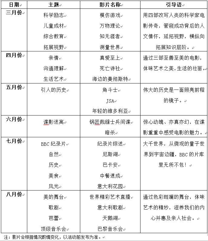 本活动是一种面向通识世界的努力尝试。在知名影评人王诗剑老师的引领下,我们将跟随影像成为科学家、艺术家、平凡人生的感悟者、翱翔在星球上空的火烈鸟、思维缜密的抓间谍者!我们将成为教育孩子的高手,为祖国献身的勇士!我们将化身美食大厨、单板高手!