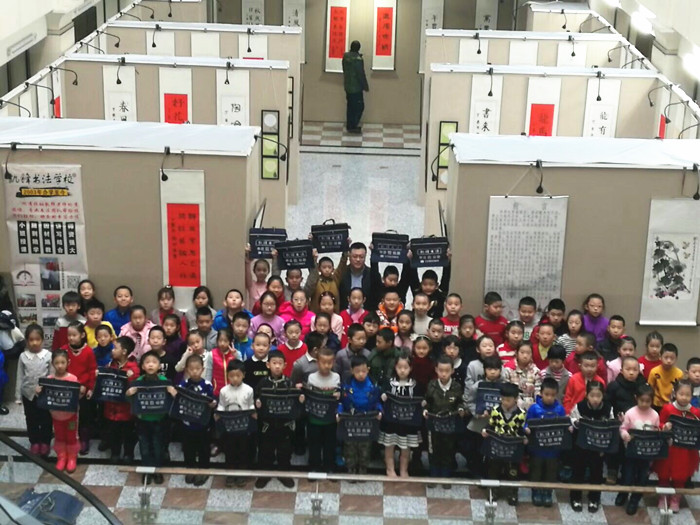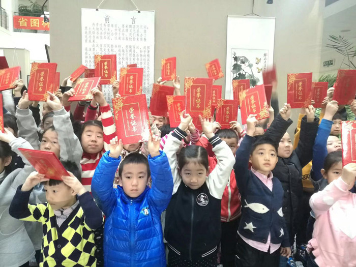 活动仪式上,程主任将举办本次活动的意义以及接下来的书法活动周和年俗送春联活动向大家一一介绍;袁校长也非常感谢省图书馆能在众多民办文化学校中选择了凯峰来做这个寒假的公益展览和公益课堂;家长代表韩林汐妈妈说道:看到孩子的作品在省图这么好的平台上展出,感到特别欣慰,这此活动更是鼓励了孩子对学习书法绘画艺术的自信心;小作者夏国皓更是把自己学习书法的心得与大家分享,同时呼吁小朋友们“字是人的第二张面孔,写得一手好字上将会受益终生”,最后程主任将本次活动的证书一一发到每个孩子的手中,将本次活动推向了一个高潮。仪式后,前来参加书画展活动的80位小书法爱好者和家长朋友们一同观看了参展的作品。