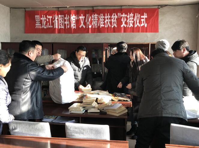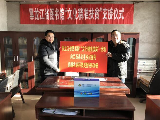 2018年1月5日,黑龙江省图书馆开展“文化精准扶贫”活动,此次精准扶贫对象为兰西县红星乡红星村,黑龙江省政府研究室财经贸易处处长、驻村第一书记崔世亮,省图书馆副馆长张大尧,红星乡党委书记李树刚,乡长吴金波等同志出席了活动。
