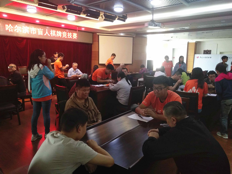 为了丰富盲人文化生活,满足盲人日益增长的文体活动需求,为盲人提供展示特长、切磋交流的平台。黑龙江省图书馆和哈尔滨市盲人协会共同举办了“龙图杯”哈尔滨市盲人棋牌竞技大赛。哈尔滨市盲协委员、骨干、盲人棋牌爱好者及志愿者70余人参加活动。