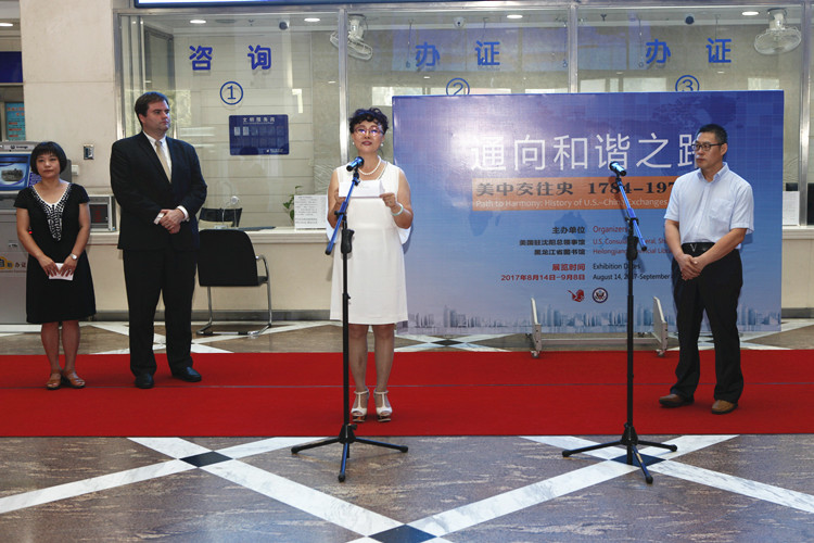 2017年8月14日下午,由美国驻沈阳总领事馆与黑龙江省图书馆共同举办的“通向和谐之路:美中交往史(1784-1979年)”图片展在黑龙江省图书馆正式展出并举行了开幕仪式。读者及新闻媒体的朋友50余人参加了开幕式。