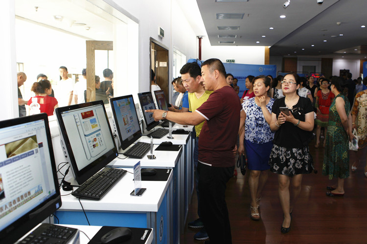 启动仪式结束后,全体领导、专家和学员参观数字图书馆体验区。体验区集中展示了数字图书馆推广工程建设近年来的成果。将特色数字资源与多媒体终端相结合,凸显在当今全媒体平台上,数字图书馆的便利性和趣味性。既有“动静结合”的新媒体展示又有多种多媒体终端设备互动体验,可以多位一体的了解国家数字图书馆建设情况,零距离访问海量的特色数字资源。其中群众喜闻乐见的多种数字图书馆成果,如:移动阅读平台、少儿数字图书馆、残疾人数字图书馆、盲人图书馆、中国政府公开信息整合服务平台等国内先进、新颖的数字资源平台。