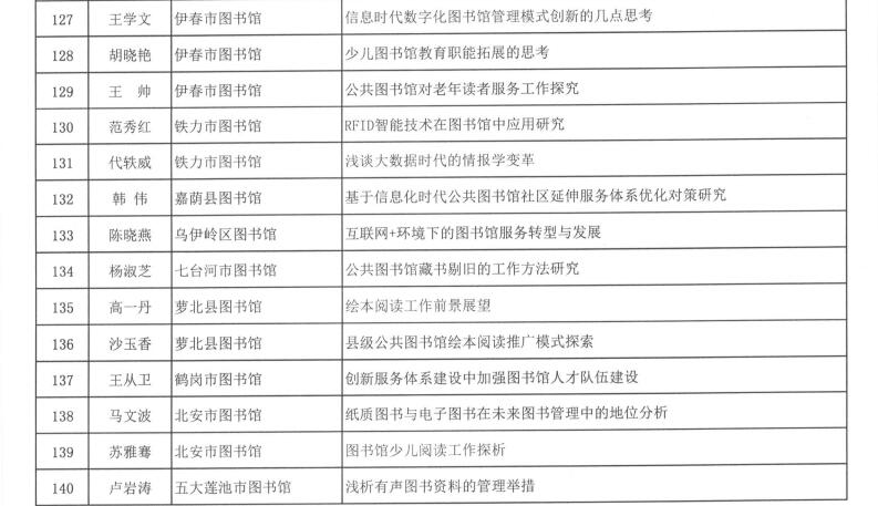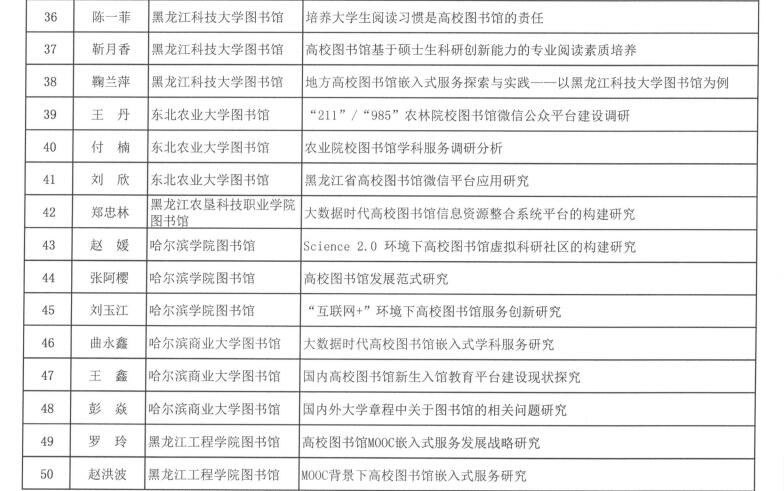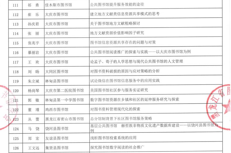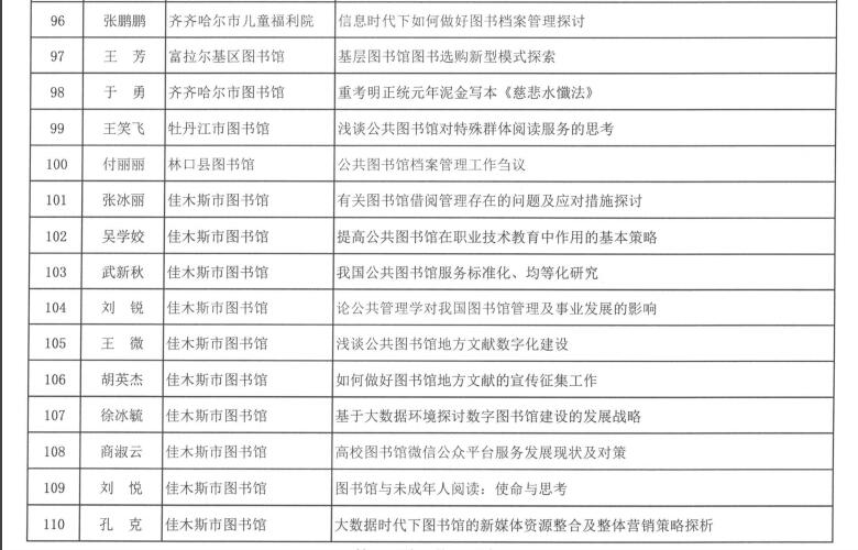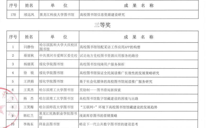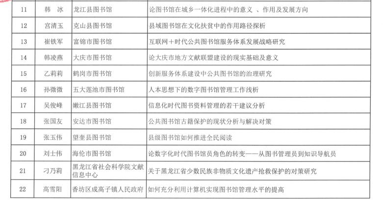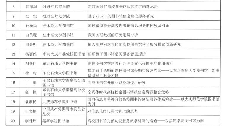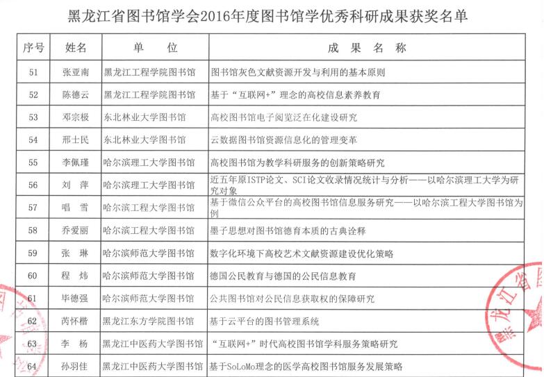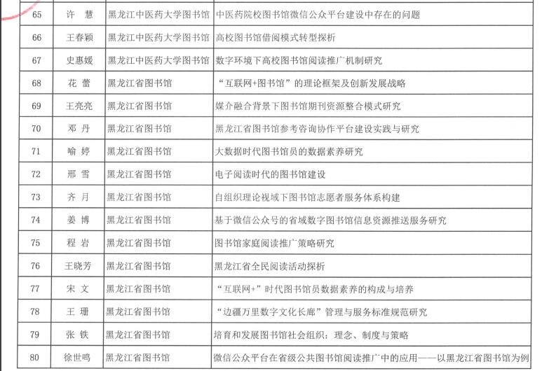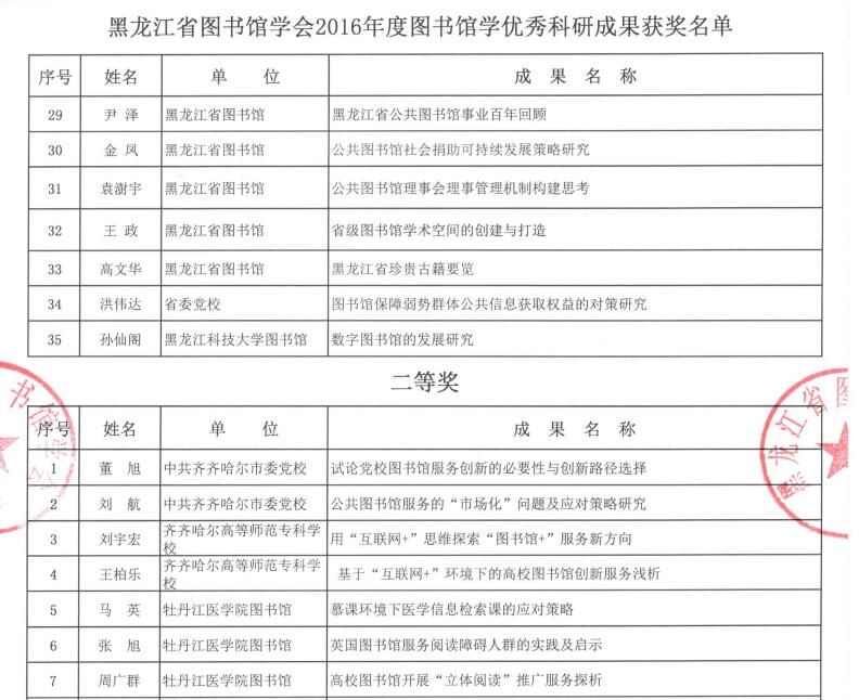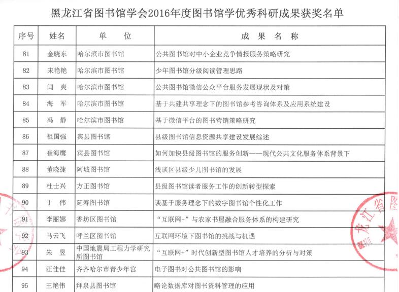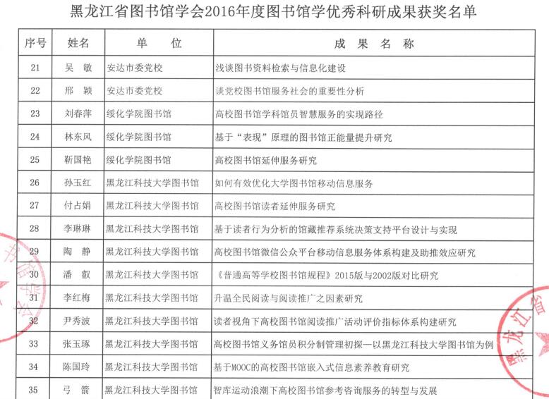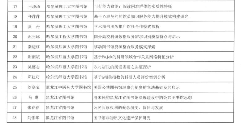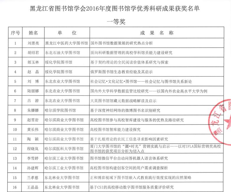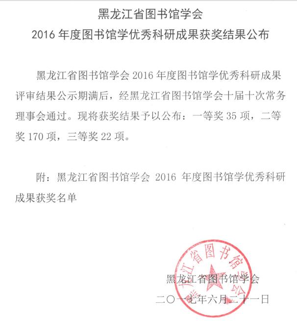 黑龙江省图书馆学会2016年度图书馆学优秀科研成果获奖结果公布
