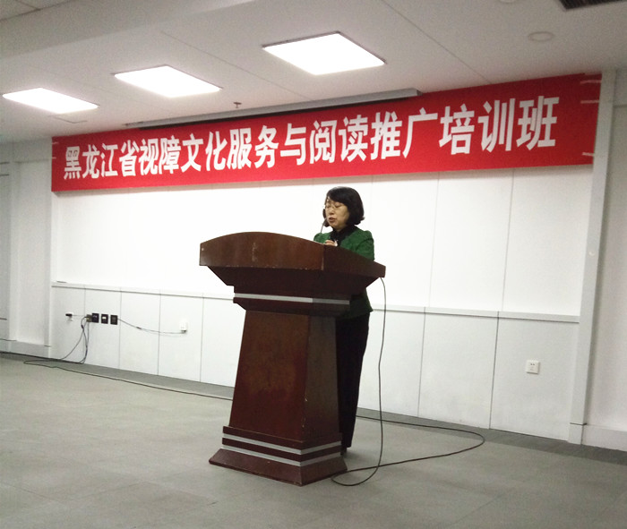 黑龙江省图书馆副馆长张大尧,中国盲文出版社副总编辑沃淑萍,黑龙江省盲人协会主席柏大林在培训班开幕式上分别作了重要讲话。