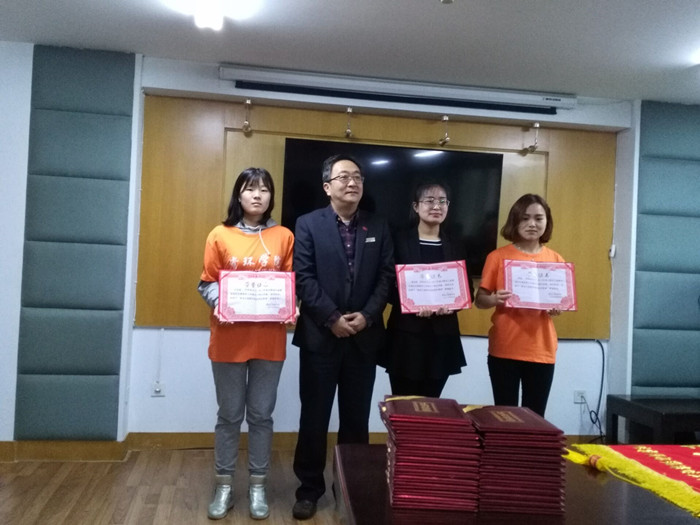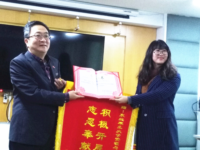 在表彰仪式上,张大尧副馆长为“东北农业大学资源与环境学院青年志愿者服务站”颁发锦旗和“优秀志愿服务团队荣誉称号”荣誉证书,授予杨圣舒、李海婷、李蕊3位同学“黑龙江省图书馆优秀志愿者”荣誉称号,郝志福主任为周芯竹等30位志愿服务工作突出的同学颁发荣誉证书。