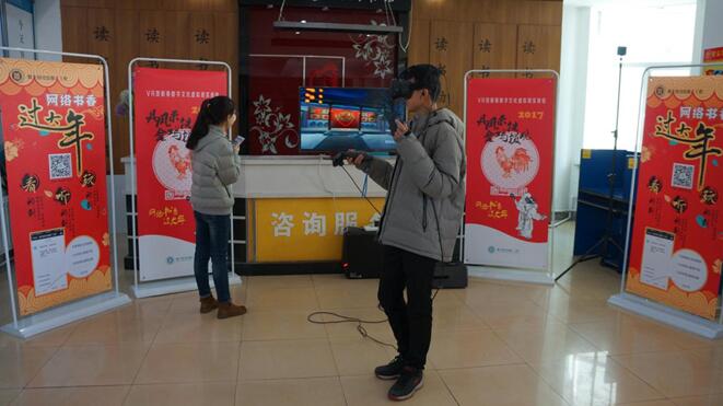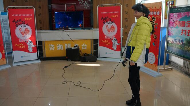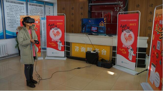 2017年2月8日,依托数字图书馆推广工程新春“丹凤来仪 金鸡报晓”VR贺新春数字文化虚拟现实体验活动,黑龙江省图书馆馆长高文华、副馆长张大尧及相关工作人员带着虚拟现实体验设备来到牡丹江市图书馆,让牡丹江市的读者朋友身临其境的新春贺岁沉浸式体验。