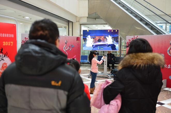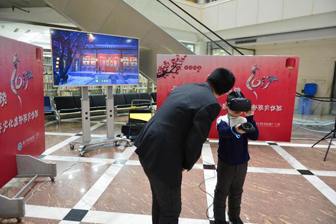 春节期间在黑龙江省图书馆将在一楼大厅现场为公众提供身临其境的新春贺岁沉浸式体验,体验将以四合院作为场景背景,读者将在虚拟现实场景中体验春节民俗,以放鞭炮、贴春联等方式进行交互体验,使参与体验的公众能在感受新春氛围的同时了解鸡年文化,进一步弘扬中华优秀传统文化。