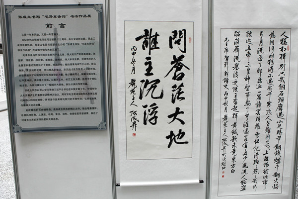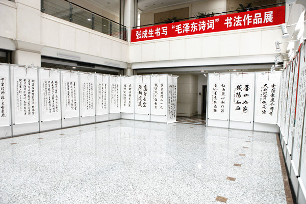 为纪念伟大领袖毛泽东同志诞辰123周年,12月21日,由公安边防文联、黑龙江省书法家协会、黑龙江省图书馆主办,博发集团、广东宏达工贸集团承办的“张成生书写‘毛泽东诗词’书法作品展”在黑龙江省图书馆隆重展出。