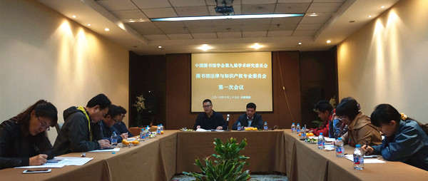 2016年10月25日19时,于安徽铜陵美华大酒店会议室,中国图书馆学会第九届学术研究委员会图书馆法律与知识产权专业委员会第一次会议隆重召开。高文华、马海群、易向军、肖容梅、金晓明、闻德锋、张兰、章明丽、周丽霞、周晓英委员参加会议,会议由专委会主任高文华主持。