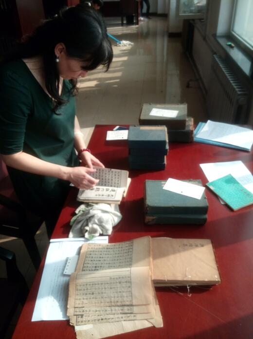 在佳木斯大学图书馆清点抽查古籍情况