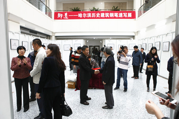 由黑龙江省图书馆、哈尔滨市归国华侨联合会联合主办的“乡道——哈尔滨历史建筑钢笔速写展”,于2016年9月28日在省图书馆展出并举行开幕式。