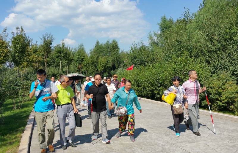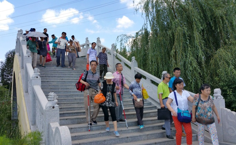 2016年08月17日,黑龙江省图书馆无障碍服务部组织盲人读者来到了哈尔滨著名景区——中国亭园。亭园以中国历代名亭原貌复建为主线,辅助修建或古朴厚重或灵巧轻盈的亭、廊、榭、阁,文化气息浓厚,景色宜人。虽然盲人读者无法亲眼欣赏到亭园内的美景,但通过景区的各个景点介绍、历史背景及图书馆工作人员绘声绘色的描述,使盲人读者也能置身其中,感受美景,无限遐想。