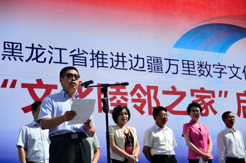 仪式上,全国文化中心副主任罗云川、黑龙江省文化厅厅长张丽娜、黑河市副市长范志国分别作了热情洋溢的致辞。罗主任对黑龙江省边疆万里数字文化长廊的建设成果作出了充分肯定,并对方便边境基层群众通过手机、平板电脑等智能终端下载、访问边疆文化特色资源与应用,实现文化睦邻的随时、随地、随身服务提出殷切希望。
