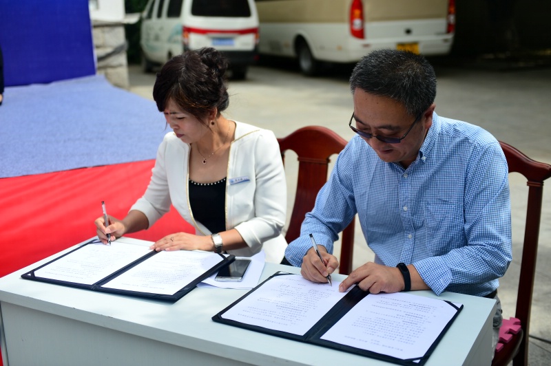 黑龙江省图书馆副馆长张大尧,与黑河图书馆馆长黄士娥签订“结对子、种文化”帮扶协议书