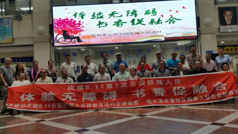 今天是第7届全国肢残人日,也是国务院《无障碍建设实施条例》颁布实施4周年的日子,香坊区残联肢协协会来到黑龙江省图书馆无障碍服务中心体验无障碍阅读。为了支持残疾人朋友们无障碍阅读,省图书馆在活动当天为首批来馆的肢残朋友们办理了残疾人专用借阅卡。为残疾人能更好的展示自己,每年的8月11日左右将为肢残人开辟展览绿色通道,搭建展示平台。省图书馆无障碍服务中心为今天到场的残疾人朋友们准备了一份贴心的纪念品,拐杖防滑皮头等生活必需品,香坊区残联肢协协会也为在省图学习的盲人朋友们捐赠了盲杖和快捷电水壶。到场的残疾人朋友们为我们带来了诗朗诵,盲人小读者为大家献上了一则小故事。希望省图书馆能为更多残疾人朋友架起无障碍的桥梁送去一缕书香!
