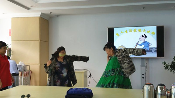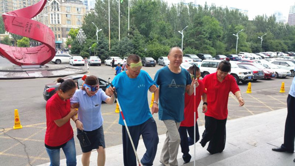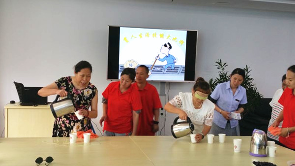 为提高盲人生活自理和参与社会活动的能力,2016年07月22日黑龙江省图书馆无障碍服务部,为盲人朋友举办了一场生活技能大比拼活动。活动共分为四个游戏环节,分别是穿衣服、倒水、独自行走和找书。参加活动的有盲人读者也有低视力读者,为比赛公平我们为低视力读者准备了眼罩和盲杖。而选手们参加比赛即可获得一份小礼品,这四个小游戏在平常人看来很简单,但盲人做起来都会非常困难,游戏中有的盲人完成的很快也有的完成的不够完美,但大家都玩的很开心。我们的活动就是让大家在玩中慢慢接触这些生活技能,让他们能够走出家庭、融入社会。盲人朋友们也都纷纷表示希望能多举办一些这类活动。