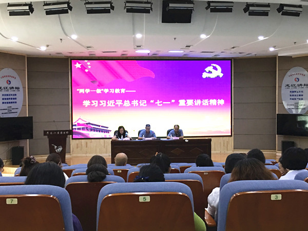 2016年7月20日下午在黑龙江省图书馆报告厅开展了“两学一做”学习教育——学习习近平总书记“七一”重要讲话精神。党委书记、馆长高文华传达了《习近平总书记在庆祝中国共产党成立95周年大会上的讲话》,副馆长孙建华传达了《张丽娜厅长在省直文化系统学习贯彻习近平总书记“七一”重要讲话精神专题会议上的讲话》,大会由党委副书记姜以敏主持。