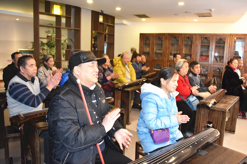 琴乐悠悠,清音雅韵。2019年元旦期间,省图龙江书院迎来了一批特殊的听众。他们在黑暗的世界里前行,声音就是他们生活中的全部。1月4日上午,16位视障读者第一次走进龙江书院,用触摸、聆听来感受中华源远流长博大精深的古琴文化。古琴早在三千多年前就与中国文化和文化人“士”结下了不解之缘。在整个中国文化中,琴以“四艺”(琴棋书画)之首的特殊地位,绵延几千年,得到了充分的发展。为了使视障读者了解古琴相关知识,充分感受古琴魅力,黑龙江省非物质文化遗产传承人、哈尔滨市古琴研究会会长李树果老师,讲述了古琴的历史和由来、古琴的构造并现场演奏古琴曲《凤求凰》、《杏花天》《酒狂》等名曲,使视障读者在学习和欣赏之余感受历代文人雅士以琴修身、以琴养性,陶冶情操、抒发心绪的情致。大家的兴致极高,李老师还现场教授大家弹奏《沧海一声笑》,使前来参加活动的视障读者通过触摸古琴、聆听古琴曲,进一步感受中华优秀传统文化的深厚与魅力!