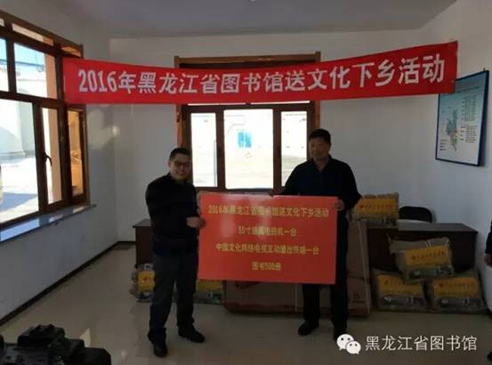 2016年初,省图书馆相关人员又在高馆长的带领下,冒着零下30多度的严寒,驱车近千公里,赴密山市太平乡宏林村、密山边防检查站和省军区边防二团,了解农村、边防部队和武警边防检查站文化建设和文化需求情况,并向他们分别赠送了图书和中国文化网络电视互动播出终端。