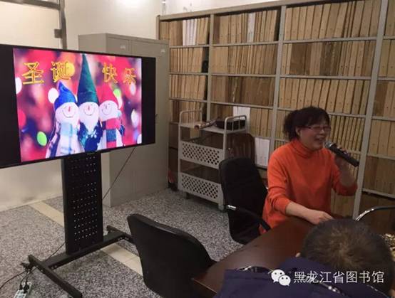 20151225是西方的节日圣诞节,黑龙江省图书馆盲人电脑培训班为丰富盲人读者的业余生活,无障碍服务部的工作人员为盲人读者们筹备了一场圣诞节联欢活动。工作人员为每位来馆的盲人及家属准备了平安果,送上省图对读者们的衷心祝福,祝愿大家新的一年里平安如意。活动中大家有说有笑各展所长,表演了自己拿手的节目,和工作人员们度过了一个欢乐的上午。