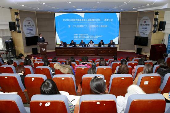 仲岩副秘书长代表主办方向黑龙江省图书馆、黑龙江省图书馆学会颁发感谢状,感谢他们在“全国图书馆未成年服务提升计划”中给予的大力支持和作出的杰出贡献,并授予黑龙江省图书馆“全国图书馆未成年服务提升计划”示范基地。