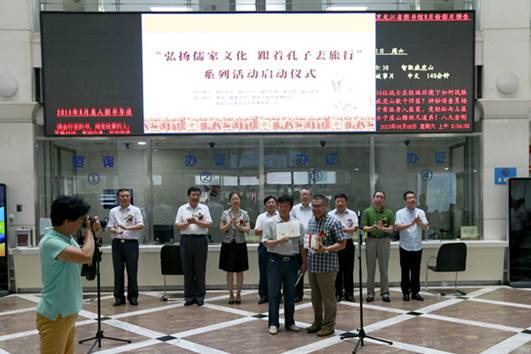 由省文明办、省文化厅、省社科联、省文联、省文史馆共同主办,省图书馆、省民族博物馆、黑龙江众森焱文化展有限公司承办,以“宣传儒家思想,弘扬中国传统文化”为主题的“弘扬儒家文化 跟着孔子去旅行”系列活动于2015年8月8日上午8:30分在省图书馆大厅正式启动。本次活动采用讲座和展览的形式广泛宣讲和深度展示孔子及其儒家思想与文化。