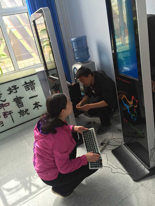 文化志愿者在密山市图书馆为基层服务点工作人员进行了技术培训,随同文化志愿服务车到县、乡基层服务点安装调试设备。