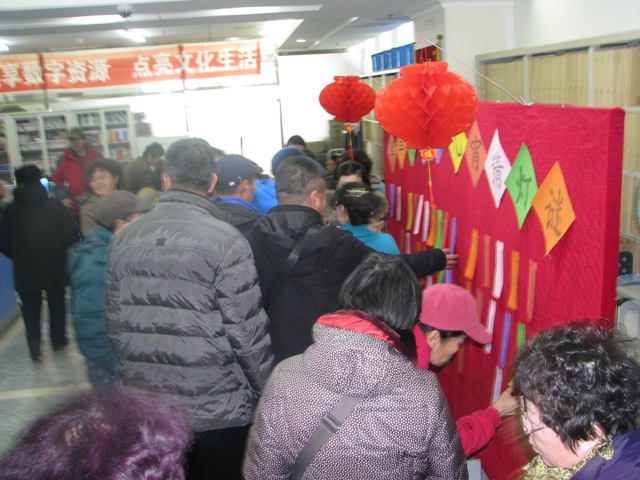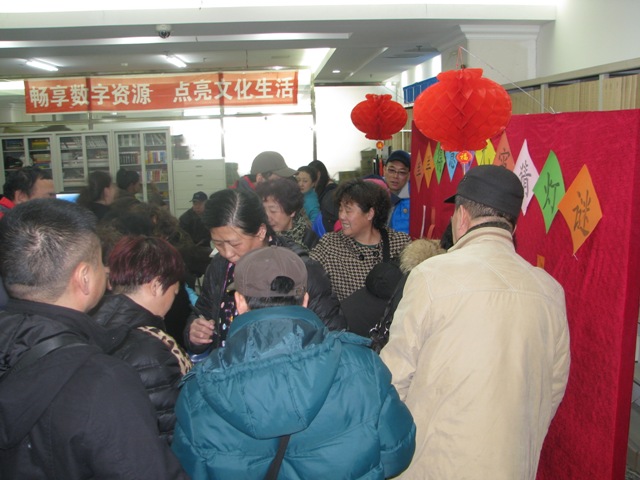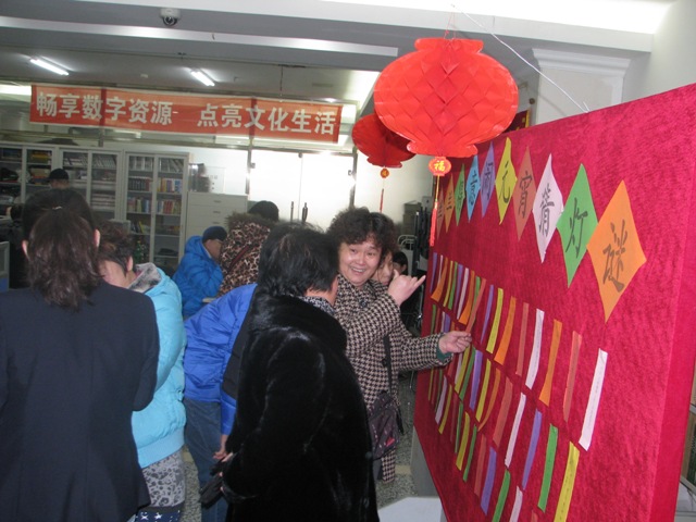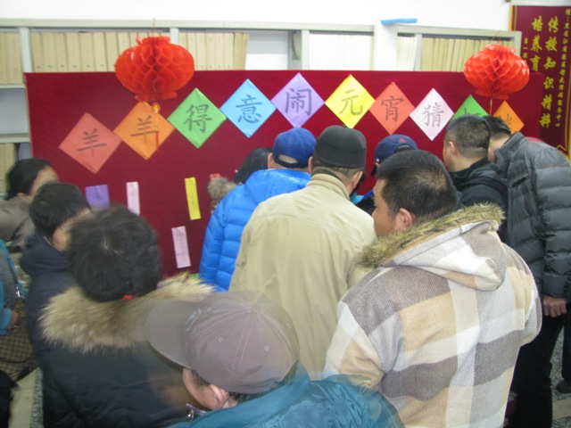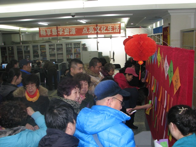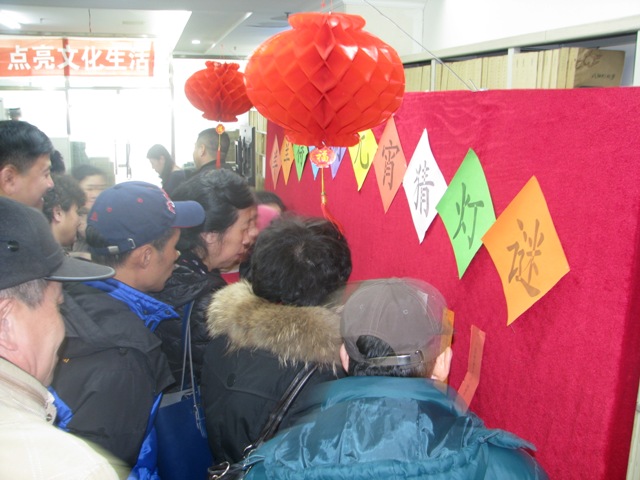 此次活动吸引了众多残疾人读者的踊跃参加,展板上挂着的50多条灯谜,内容丰富,涵盖了科普知识、法律知识、生活常识等方面,聋哑读者们围着灯谜苦思冥想。大家你一条我一条,争先恐后的竞猜,谜语很快被大家猜中并书写出来。另外针对盲人读者的猜灯谜,工作人员把谜面阅读出来,盲人读者们抢猜谜底,在一片欢歌笑语中,灯谜被逐一猜中。大家在欢度节日娱乐的同时,还获得了我们准备的精美的奖品!热闹的猜灯谜活动,给残疾人读者增添了浓浓的节日气氛,也让他们感受到了来自图书馆的温暖和关怀。