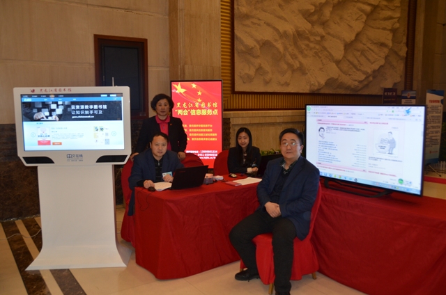 黑龙江省图书馆“两会”信息咨询服务始于2008年,在代表、委员驻地设立图书馆服务区,现场发放专门为两会编辑的专题资料,为代表、委员提供文献检索、文献传递、解答专题咨询、收发Email、打印稿件等服务。