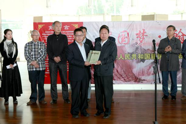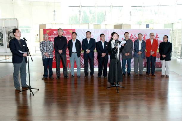 开幕式由黑龙江省图书馆工会主席闻德锋主持,哈尔滨市文联原副主席、黑龙江省艺术品收藏研究会执行副会长、绘画专业委员会主任李健华,黑龙江省艺术品收藏研究会副秘书长、书法专业委员会秘书长孙岩代表书画家讲话,行草章法学创始人、黑龙江省艺术品收藏研究会副会长杨墨纯向省图书馆捐赠图书。