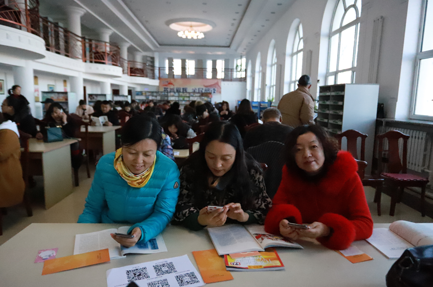 到场读者积极参加活动,下载了“国家公共文化云APP”,关注了国家公共文化云、黑龙江省图书馆和黑河图书馆的微信公众账号。读者在现场工作人员的指导下学习了如何使用APP。