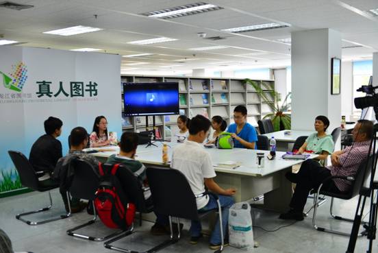 现场读者和秋赋就她的作品和作品中涉及到的边缘人群的人物刻画上又做了许多探讨,很多读者对这位文学青年寄予了美好的祝愿和深切的希望。她希望把边缘人群的痛苦展现出来,让社会更多的人了解、理解他们的生活状态,从而包容、接纳他们的存在。她在与大家分享自己从事文学创作的心路历程的同时,也吸取了很多现场读者的建议。现场活跃的交流互动充分体现了真人图书交互式阅读的意义,更生动、更直接、更立体。