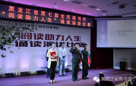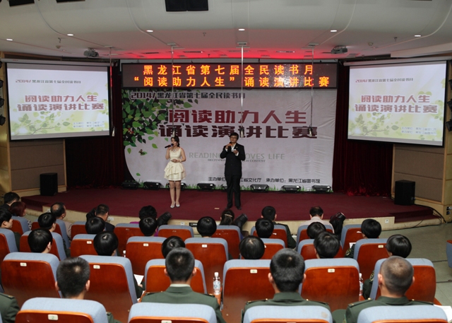 为扎实推进全省第七届全民读书月活动的开展,进一步营造崇尚阅读、全民阅读的学习氛围,促进学习型社会建设与边疆文化大省建设,在以阅读丰富和提升人民群众思想道德文化素质的同时,歌颂大美龙江与名人伟业、民俗风情、文明成果,省文化厅于2014年第七届全民读书月期间在全省范围内组织开展了“阅读助力人生”大型诵读演讲比赛活动。
