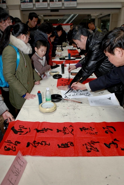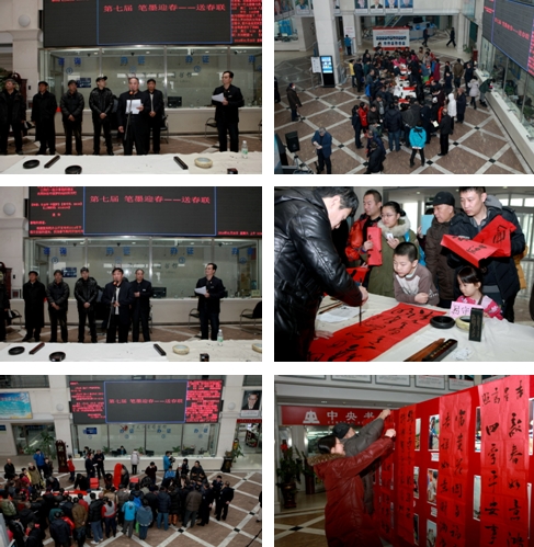 在新春佳节来临之际,由黑龙江省图书馆、哈尔滨书画院共同举办第七届“笔墨迎春——送春联”活动。马年春节即将到来,为了给新春文化生活增添一份喜庆和吉祥,1月25日在省图书馆一楼大厅,王显君、吕守堃、杨长印、孟传深、金山人等著名书法画家现场挥毫,为大家呈现描绘时代风貌,抒发美好愿望,祝福吉祥如意的墨宝——春联50幅。
