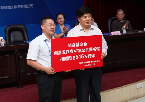 韬奋基金会代表全国出版界向黑龙江省公共图书馆捐赠图书