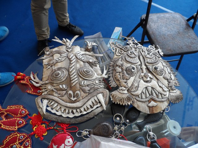 鱼皮艺术是赫哲族传统手工艺品,有千年历史。赫哲族通过对鱼皮的粘贴和镂刻,以独特的形式,从不同角度表现了赫哲族人民的聪明才智和审美的群体意识。经过当代艺术工作者的加工,已经具有了全新的艺术形式和更加丰富的文化内涵。
