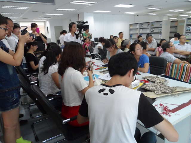 随着张琳老师对鱼皮艺术娓娓道来,读者们开始踊跃提问,老师就关心的话题与大家进行了现场交流,读者们对鱼皮技艺传承的话题展开了热烈的探讨。张林老师的学生们在现场手工制作鱼皮画作品,制作完成的小作品赠送给了现场的读者们。她说:“ 无论还能走多远,无论还能坚持多久,历史长河中一脉因我们努力而绵延不断,因为我们努力民间艺术能发扬光大,因为我们努力让更多的人了解喜爱赫哲族历史文化和即将灭绝的鱼皮艺术,我能盛下各种磨难困苦。”张琳老师持之以恒的精神,让在场的每一位读者为之动容!
