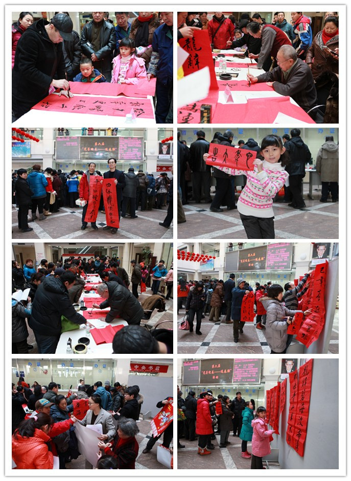 1、“笔墨迎春——送春联”活动已经举办了6年,始终受到广大读者的欢迎。今年我们将继续邀请哈尔滨书画院的王显君、程义山、刘福钧、王希孔、金山人、吕守堃等书画家为前来我馆的50位读者奉献上墨宝——春联50幅。