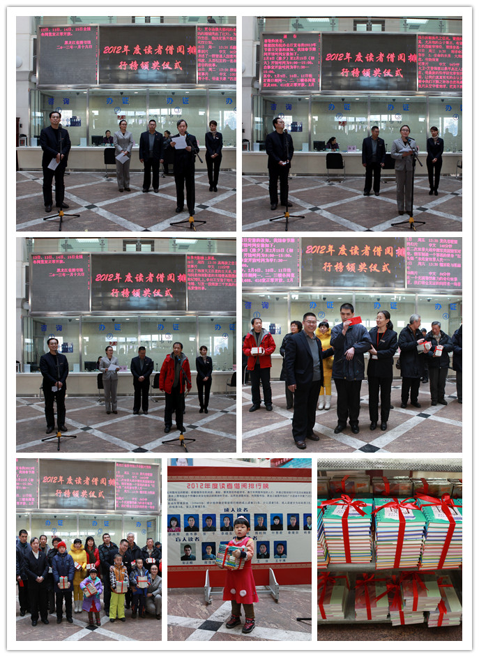 3、为了表彰、褒奖那些热爱读书、善于利用图书馆的人们;并通过借阅排行评选活动激励更多的人喜欢上读书,喜欢上图书馆这个传播公共文化知识的阵地和平台,从而走进图书馆,利用图书馆,黑龙江省图书馆在广大读者中开展了2012年读者阅读排行评选活动。