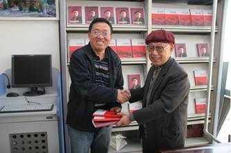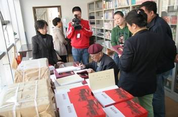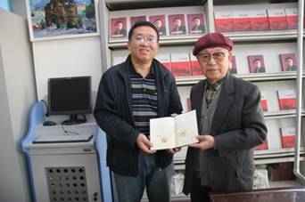 2010109,我省著名的作家、书画家,87岁高龄的利化先生,将自己撰写的《大地飘香》、《风云鉴事》等920册图书无偿捐赠给黑龙江省图书馆,省图书馆党委书记、常务副馆长董绍杰同志热情接待了利化先生,代表黑龙江省图书馆接受了捐赠,同时向利化先生赠送了收藏证书,并表示一定按照利老的意见,将图书转赠给各地、市图书馆。