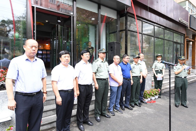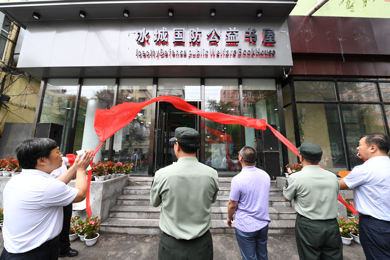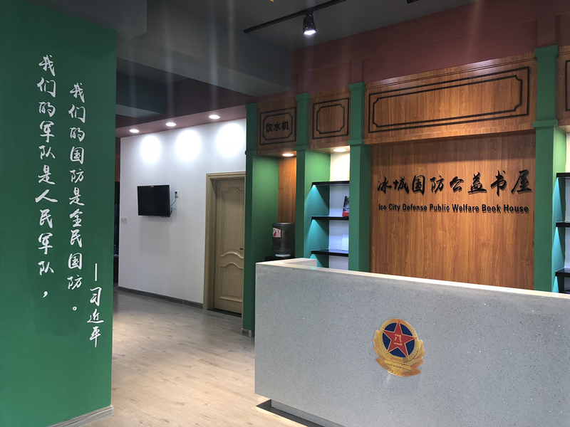 2018年7月31日上午9时,“冰城国防公益书屋”落成仪式在哈尔滨南岗区邮政街举行,哈尔滨警备区政委韩玉平、黑龙江省图书馆馆长高文华、省国教办主任李荆复、市委宣传部副部长朱彦铭、市人防办主任田忠利、警备区副司令员邢谴非、副司令员王勇男,市人防办副主任李永宝、副主任廖洪涛,人防办和警备区机关、南岗区人武部部分干部、文员和职工等出席了落成仪式。