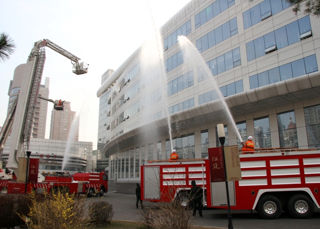 整个演练南岗大队共出动了8台大型消防车,近20名消防队员,我馆抢险队员共计30余人参加消防演练。