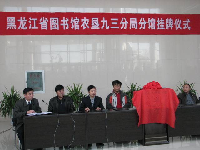 上午8点30分,九三分局文体大厦内热闹非凡。当地的400多名学生、公安干警及读者参加了黑龙江省图书馆九三分馆揭牌仪式。在主席台就座的有黑龙江省图书馆副馆长刘继维、黑龙江省农垦总局图书馆馆长王怀德、中共农垦九三分局党委委员宣传部部长刘文秀、分局文体局局长张树平、分局广播电视局局长赵强。