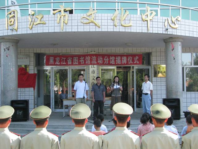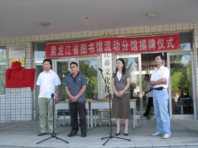 黑龙江省图书馆馆长高文华在挂牌仪式讲话说:黑龙江省图书馆同江流动分馆挂牌成立是省图书馆延伸公益文化服务,支持、扶持地方基层图书馆事业协调发展,带动基层图书馆现代化建设进程的一项重要举措。今年省图书馆在我们全省的边境县、贫困县共享工程的试点县和旅游景点区有计划的建设了20所流动分馆。由省图书馆统一投资为每个分馆配置10万元左右的纸本图书和20万元左右的数字资源。流动分馆的建设丰富了各县、区公共图书馆的馆藏资源,促进了基层图书馆事业向现代化、规范化、标准化发展,同时也促进了地方经济、文化建设和社会进一步的发展。同江是我们黑龙江省边境重镇,又是重点少数民族文化的保存区域,经济社会的发展具有极大的潜力和前景。希望同江市文化部门和图书馆的全体同仁以满腔的工作热情,把我们的服务送到千家万户、送到社会各个阶层,让公共图书馆事业成为社会发展的助听器和加油站,成为精神文明建设的新动力。