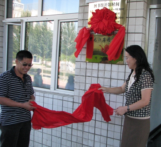 黑龙江省图书馆馆长高文华、同江市副市长白丽华为流动分馆揭牌