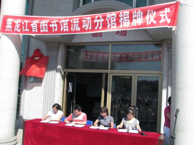 省图书馆、鹤岗市图书馆、萝北乡文体局、萝北县图书馆签订“黑龙江省流动分馆建设协议书”