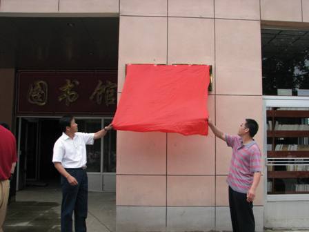 黑龙江省图书馆馆长高文华、汤旺河区区长刘学林为汤旺河流动分馆揭牌。