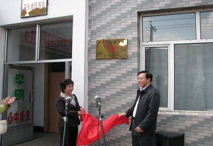 省图书馆馆长高文华、肇源市副县长王鸿鹏为分馆揭牌