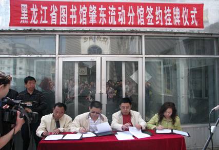 肇源县图书馆赵馆长签订黑龙江省图书馆流动分馆协议书