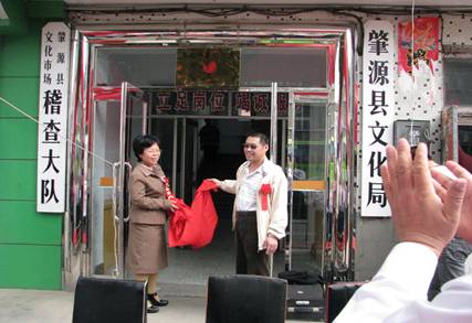 省文化厅副厅长宋宏伟、肇东市副市长林玉萍为肇东流动分馆揭牌